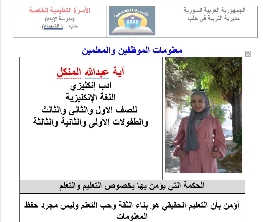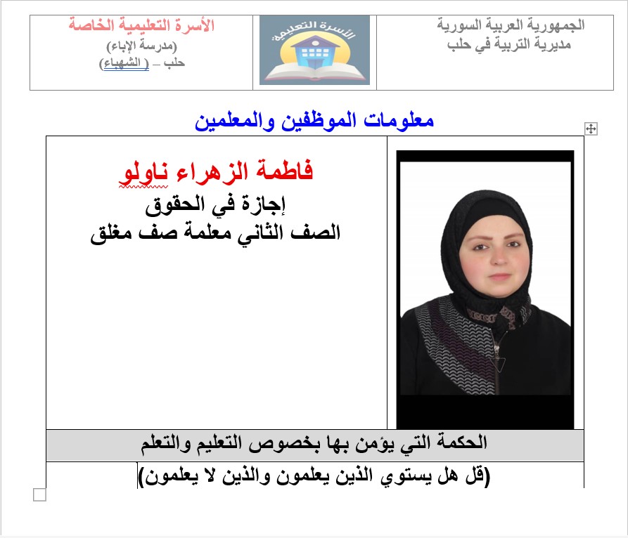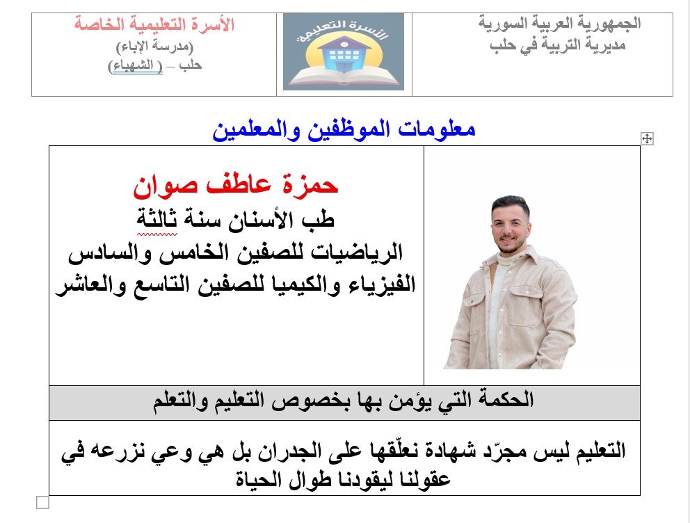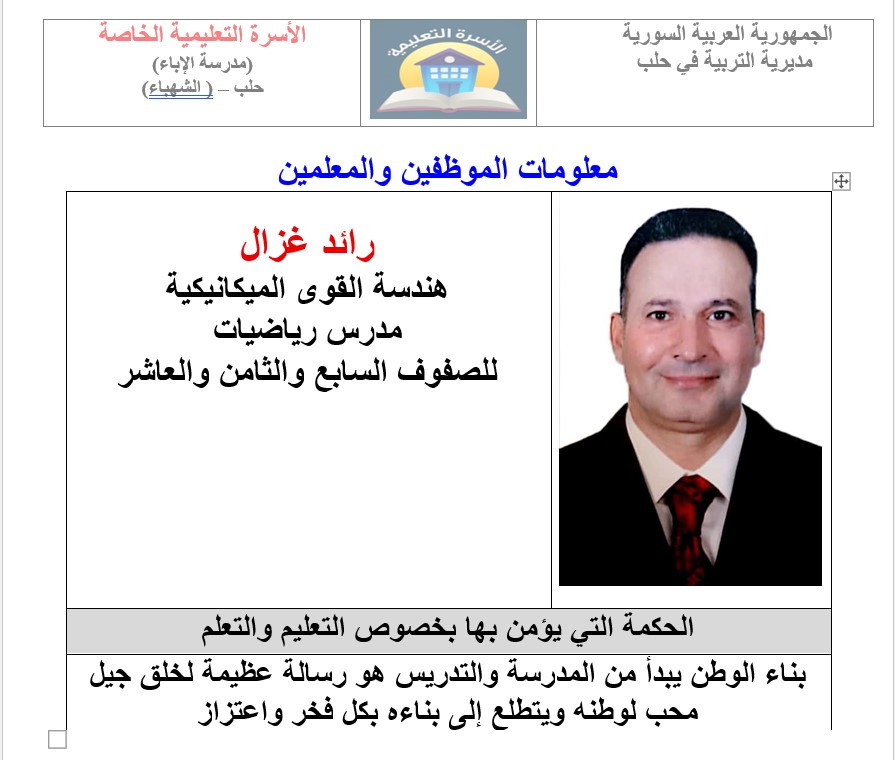 الهيئة التعليمية والإشراف >>>>> المعلمين والمعلمات
