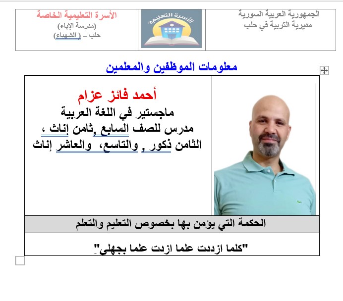 الهيئة التعليمية والإشراف >>>>> المعلمين والمعلمات >>>>> عزام
